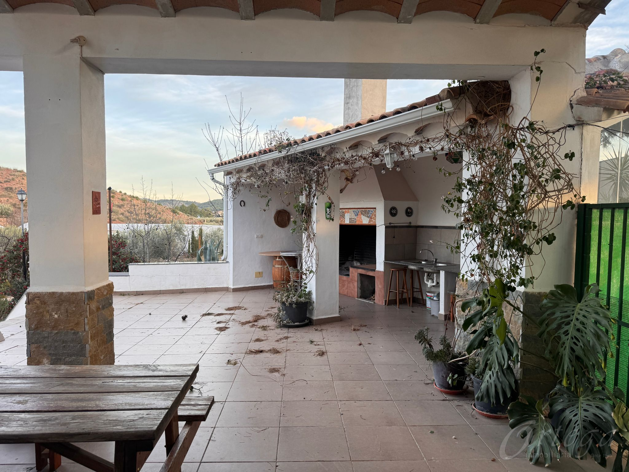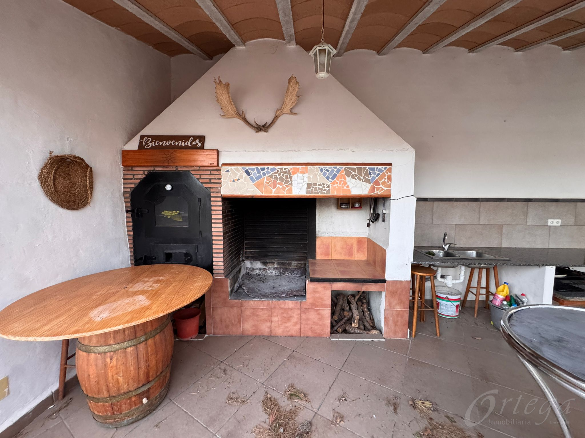 Zona de barbacoa techada, amplia, con placeta perfecta para mesa, sillas y largas sobremesas con amigos